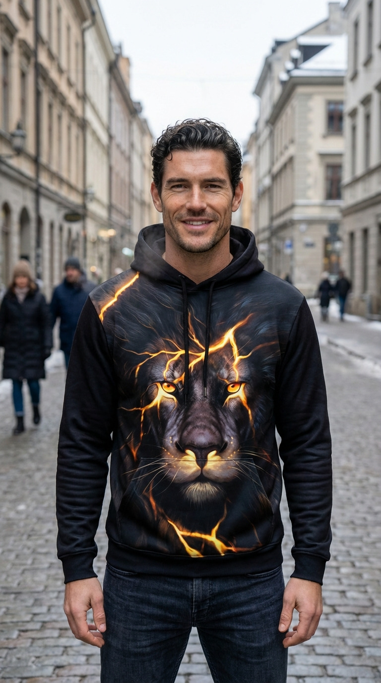Blua Moletom Leão Bravo. Moletom flagelado macio e confortável.